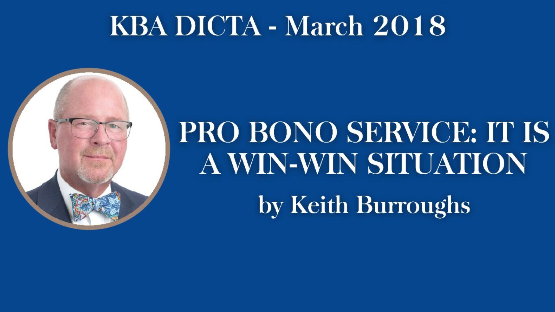 PRO BONO SERVICE: IT IS A WIN-WIN SITUATION by Keith Burroughs